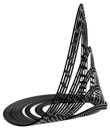 For the installation, we have chosen to produce the Lorenz and the Rössler attractors, as well as three examples from Sprott's prototypes, all in 3D forms. Chaotic attractors are usually depicted as a single trajectory in one long thin line. In our models, we represent this line as a ribbon which indicates the principle directions of stability. These ribbons either make simple loops or wind like Möbius strips and allow for a visual interpretation of their curious topological structures.